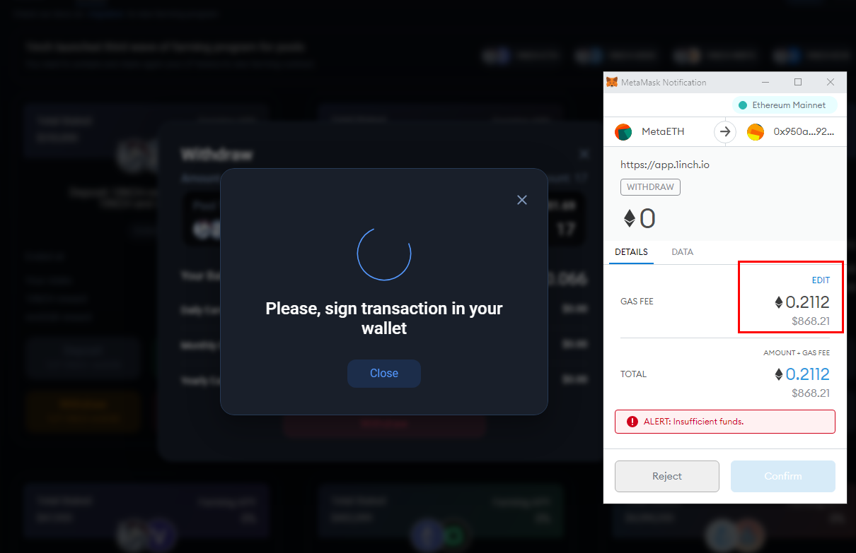 $868.21 to withdraw ~$280 worth of token and $13 worth of rewards.