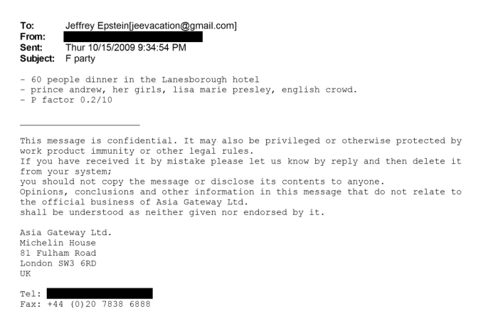 We can also settle one question easily, Lisa Marie Presley. Well…it turns out that on Thursday, October 15th, 2009, Jeffrey Epstein sent an email to [redacted].