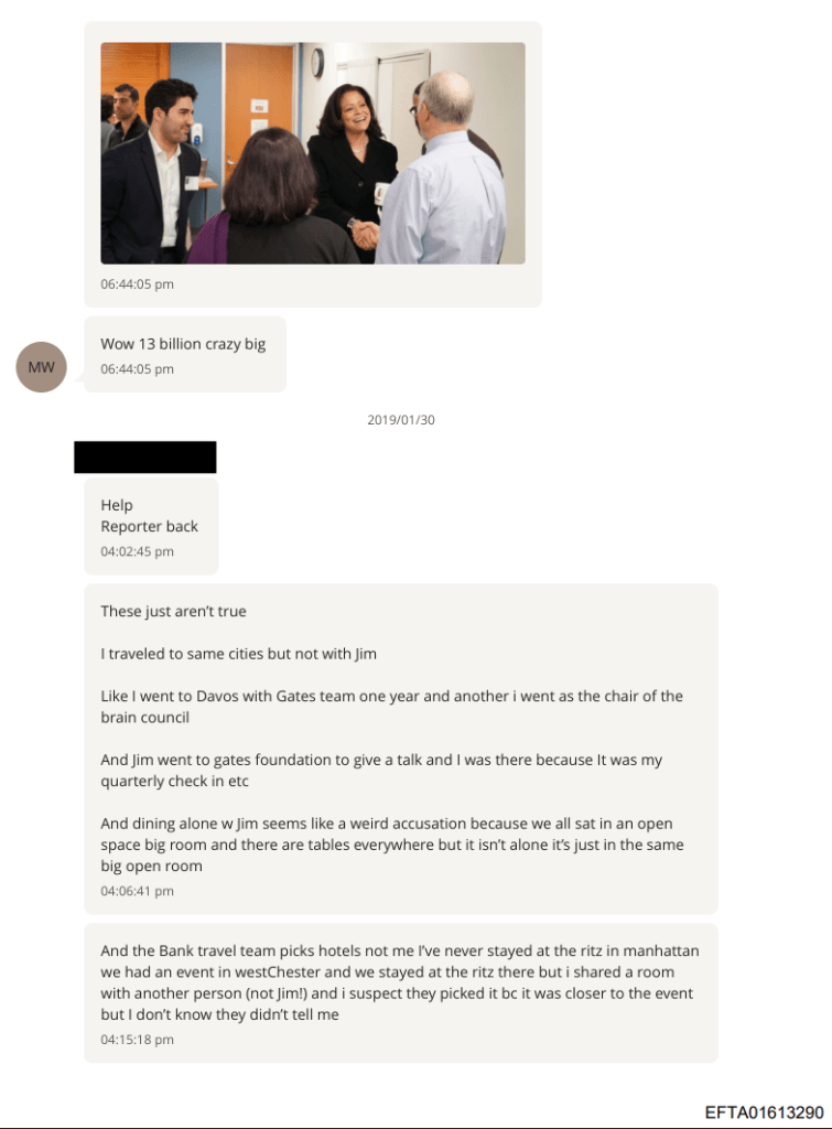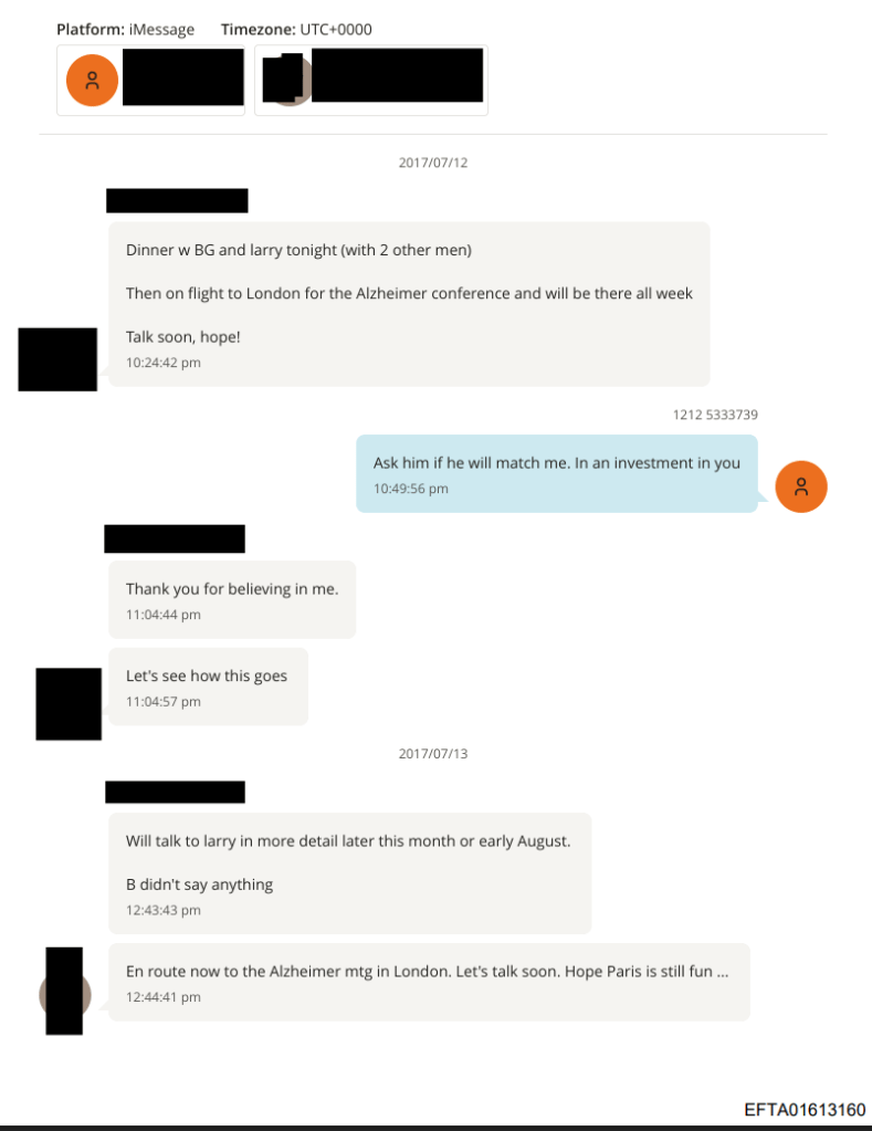 These are largely from Data Set 10. Here we see document 1612935. This is where we see what makes this relationship interesting. ‘Bg” == Bill Gates (100%). Larry == Larry Summers (I think). Her work at relationships at the Bill and Melinda Gates Foundation was a big part of her value to Epstein. Recall, Bill Gates was, for most of this period before, the richest man in the world. (from Document ID 1612935).